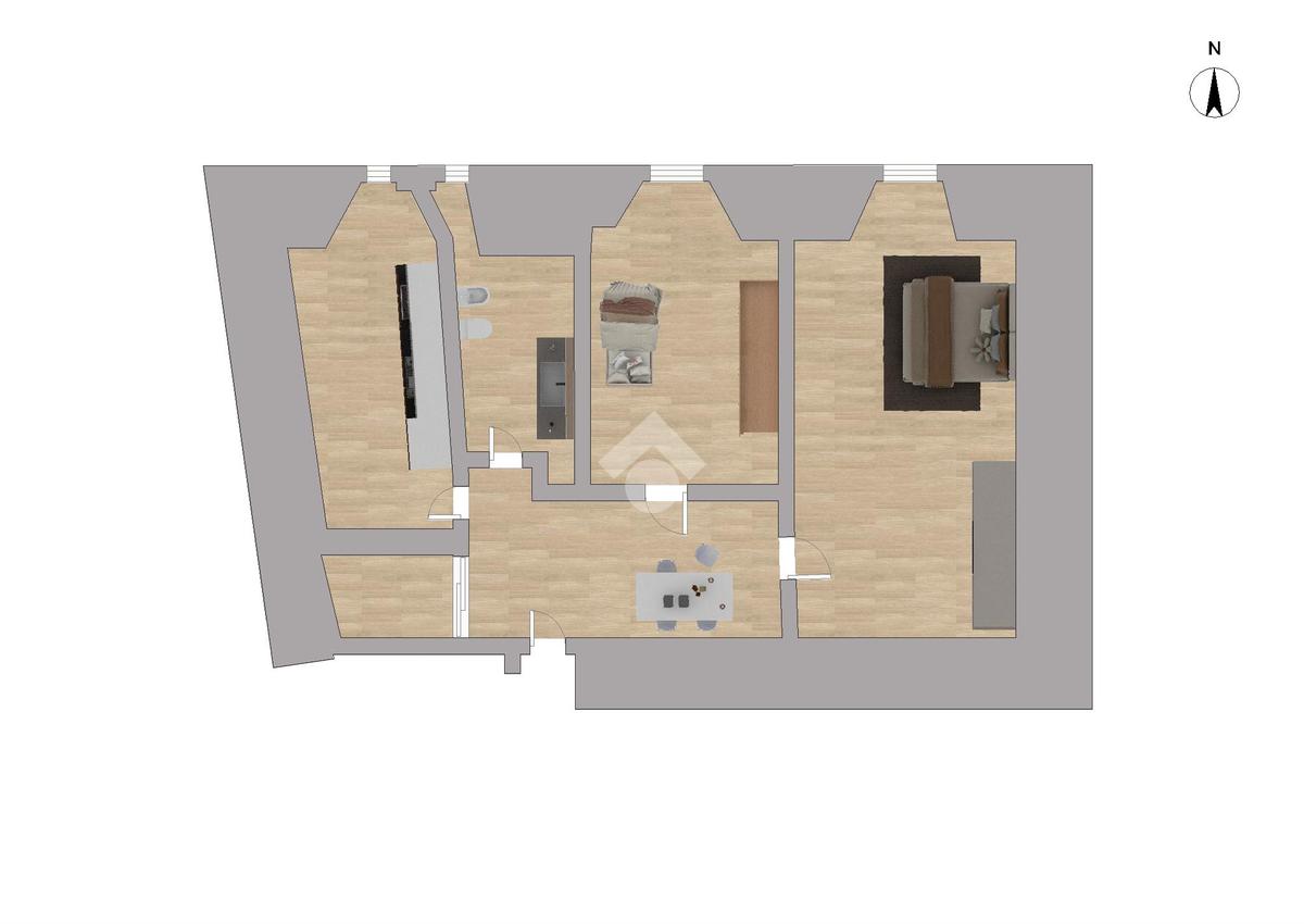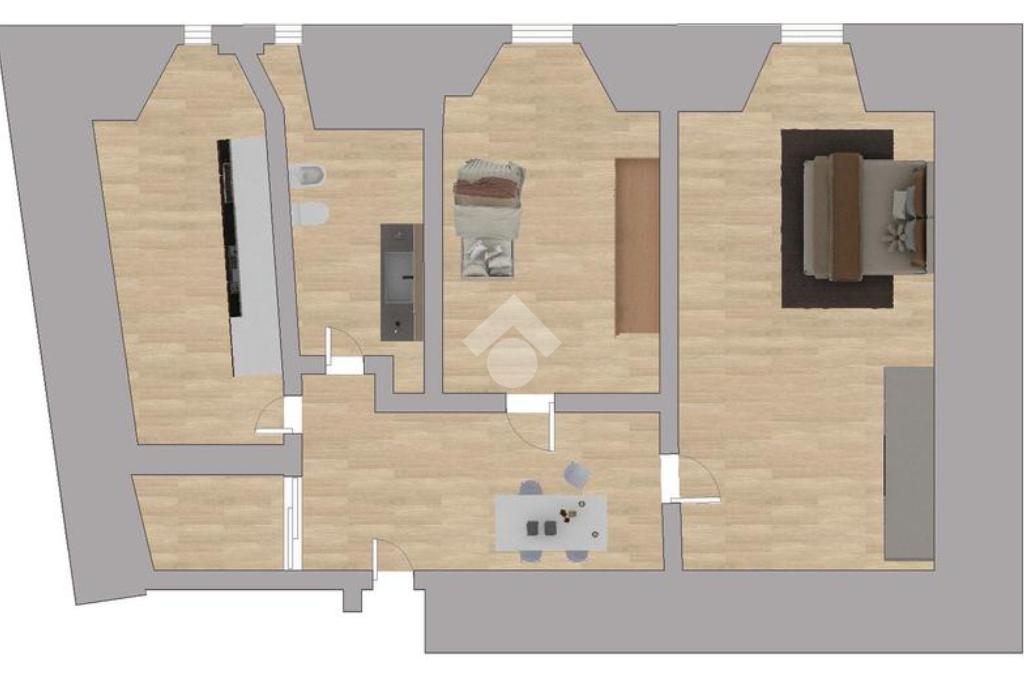 L’appartamento è composto da un ampio ingresso adibito a zona giorno, cucina abitabile, camera singola, ampia camera matrimoniale, ripostiglio e bagno finestrato con vasca.